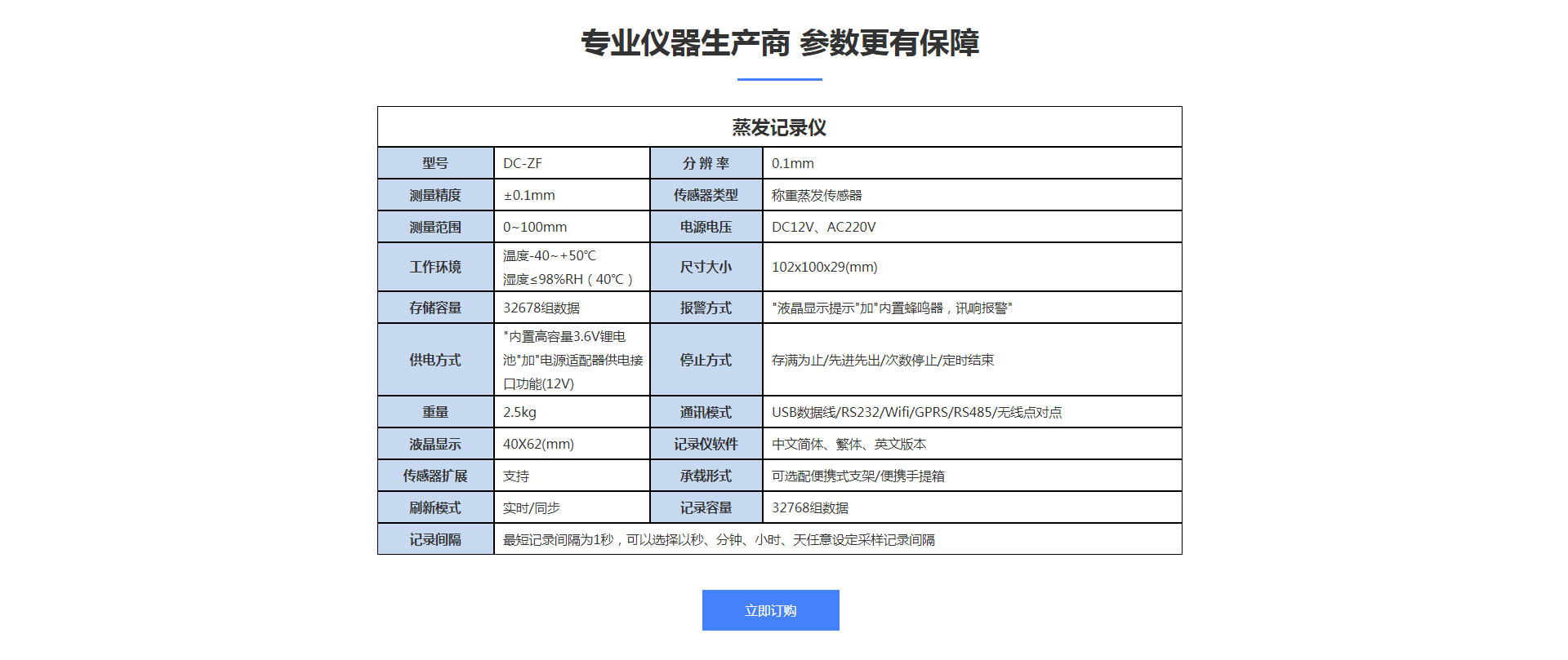 高精度自動蒸發(fā)站參數(shù)配置表